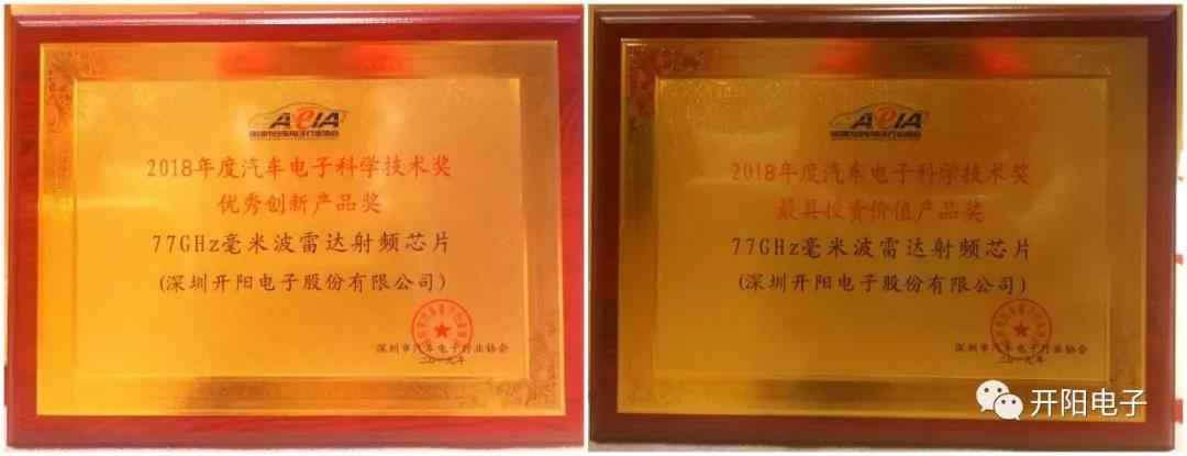 会上,珠海光远旅游电子商务有限公司自主研发的“77GHz毫米波雷达射频芯片”一举获得两项中国汽车电子科学技术奖——“优秀创新产品奖”和“最具投资价值产品奖”。